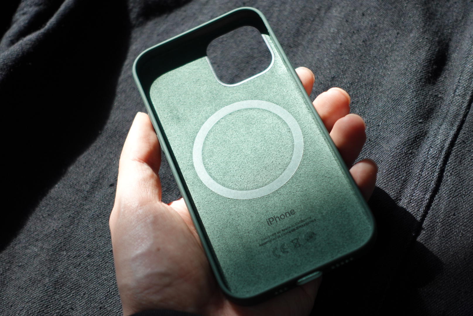 - 안쪽에는 이번에 적용된 맥세이프의 시그니처(!?)와 같은 원형의 자석모듈이 보입니다. 그리고 양쪽에 버튼이 달려있습니다. 실제로 폰을 끼워봐야겠지만 없는상태로 눌렀을때는 상당히 부드럽게 조작이 가능했습니다. 또 이번 부터 직각디자인이라 하단도 라이트닝케이블 포트와 스피커 부분을 제외하고 모든 부분이 막혀있는 일체형 케이스로 나와서 좋은것 같습니다.