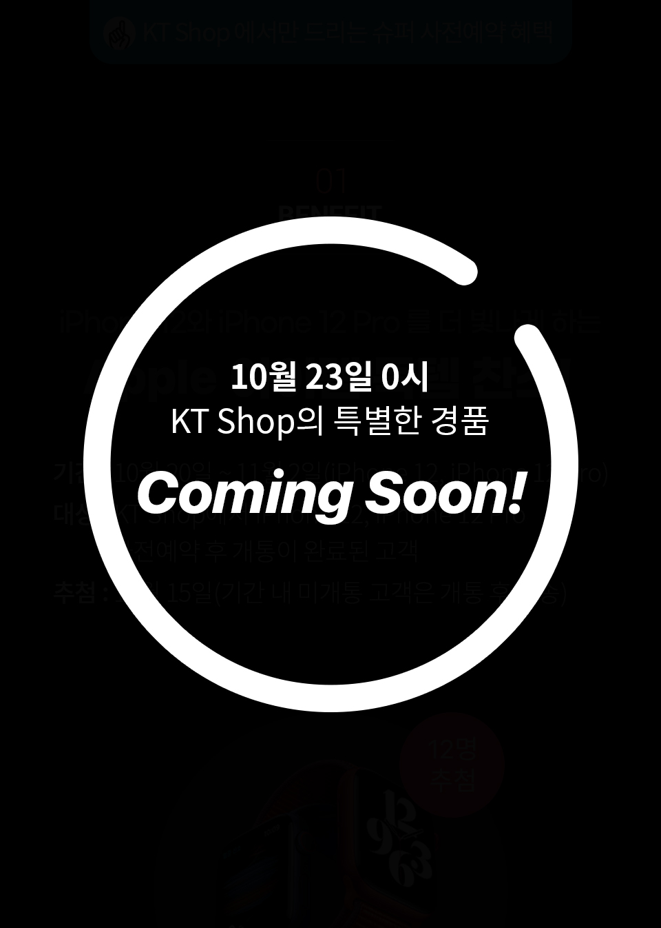 - 사전예약알람(22일 23시까지) 신청시 아이폰12, 어뎁터를 추첨으로 제공. (단, 개통한 고객 대상 한정). 이 외 23일 사전예약을 통해서 유샵전용 쿠폰팩, 경품이벤트, 기프트, 매니아 특별혜택을 제공한다고 합니다.