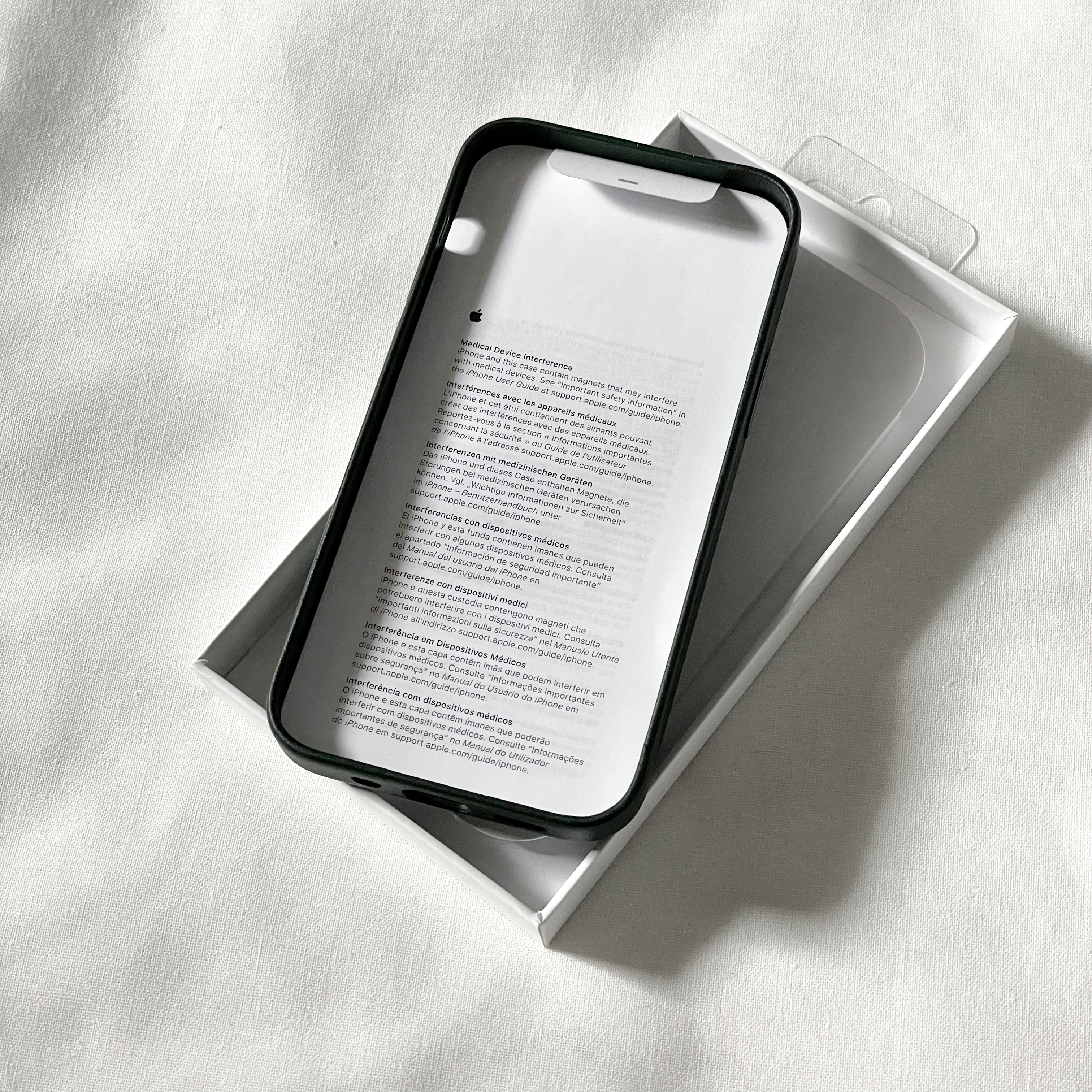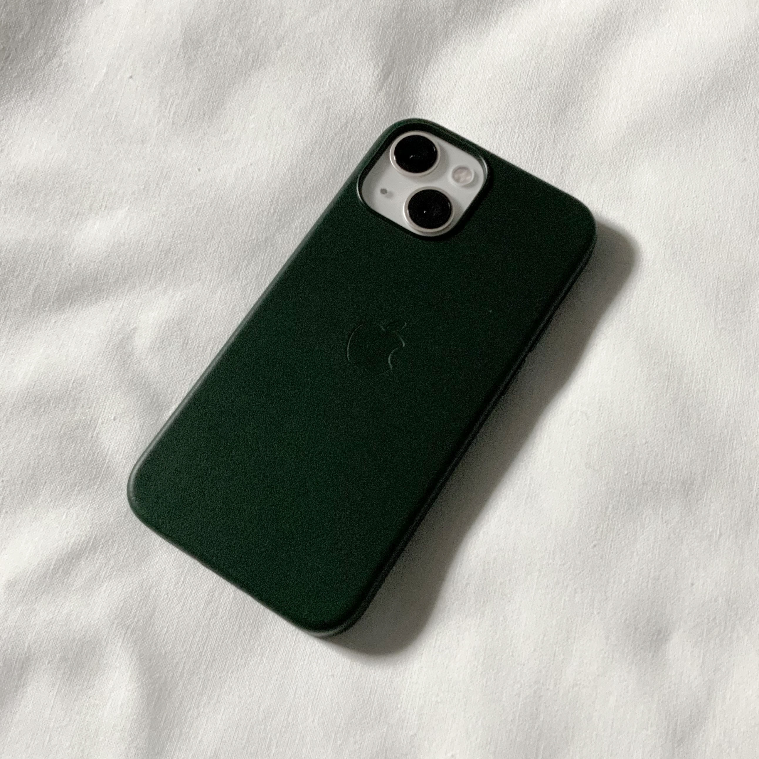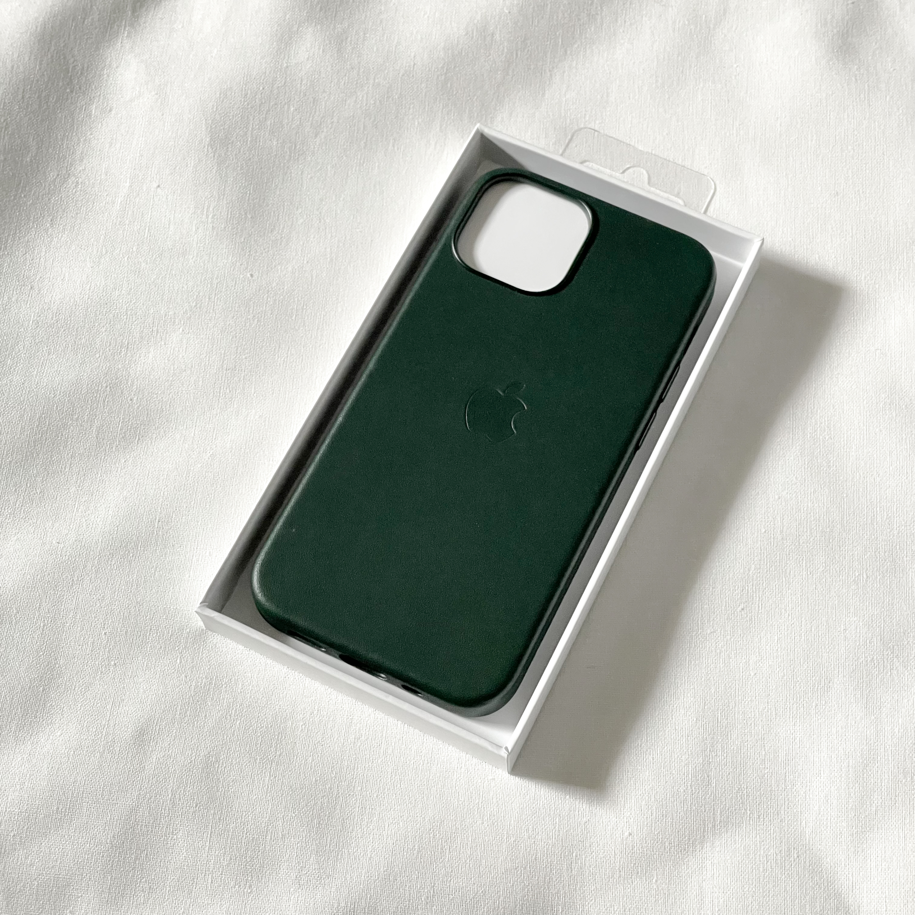 그리고 케이스를 오픈하면 본품인 케이스가 나오는데, 세쿼이아 그린 컬러의 진한 그린색상이 가을 계절에 딱 맞는 색깔인것 같아 고르게 되었습니다. 역시 가죽 특유의 텍스처가 주는 느낌은 정말 고급스러워서 실리콘과는 다른 매력으로 조금 더 묵직한 느낌을 줍니다.