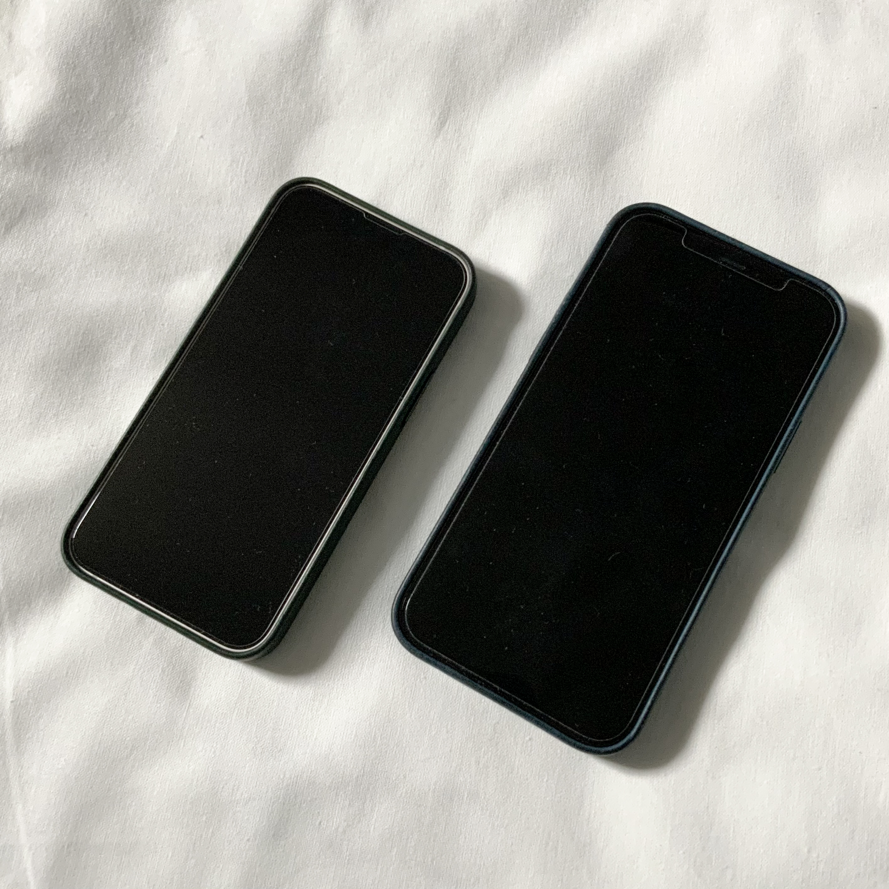 새로산 아이폰13 미니와 이전에 썼던 아이폰12 프로와 함께 비교한 사진입니다. 딱 보시면 아이폰 12 미니에는 스타라이트 색상이 라인이 오묘하게 보이는걸 알 수 있습니다. 저는 이점이 정말 가장 스타라이트를 잘 샀다고 생각되는 부분입니다.