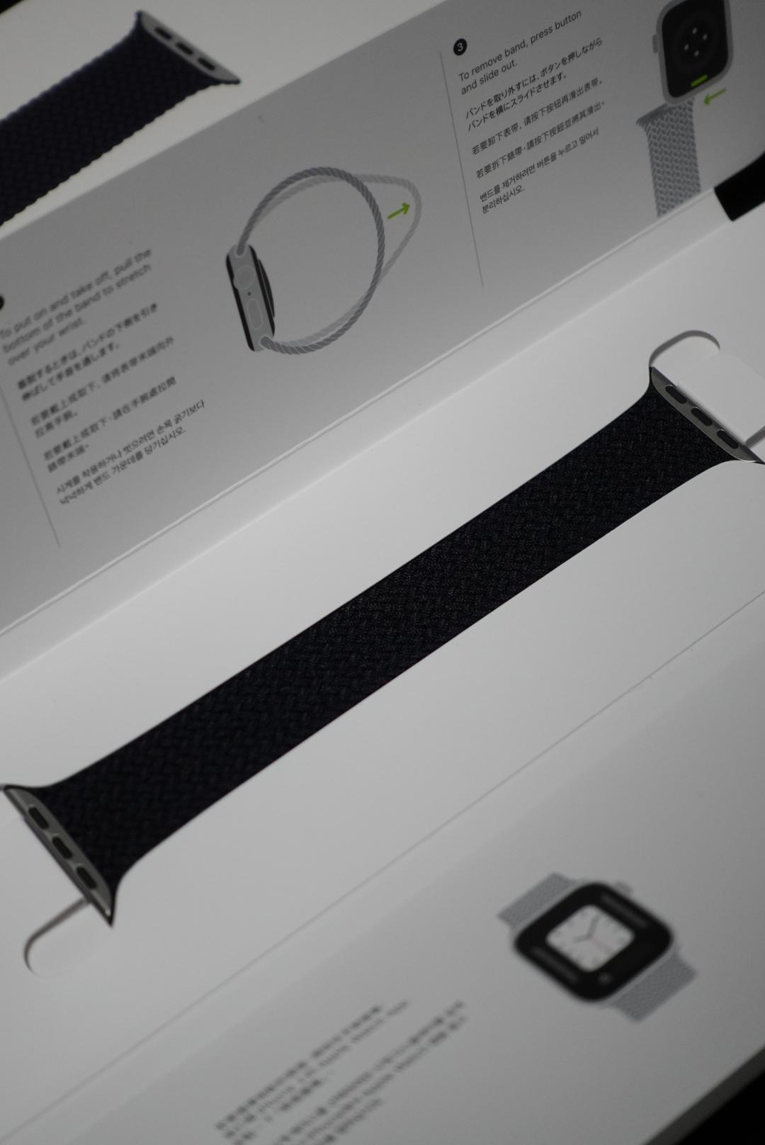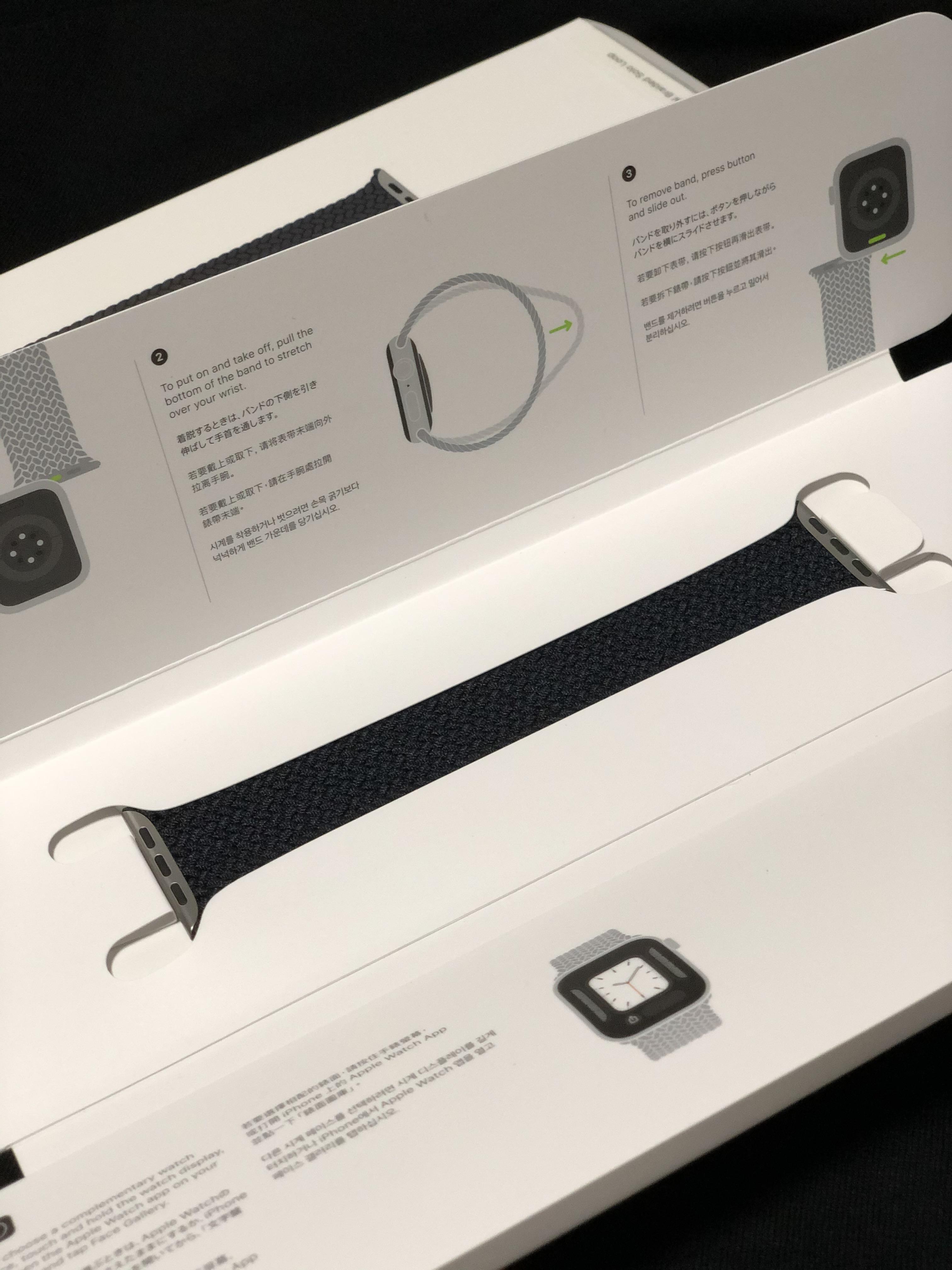 개봉을 하면 심플하게 밴드만 사진처럼 들어가 있습니다. 일체형이다보니 밴드가 깔끔하게 삽입되어 있습니다. 사진에서 보시다시피 새로운 소재이기도한 이 밴드의 특징인 짜여진 직물의 텍스쳐가 느껴집니다.
