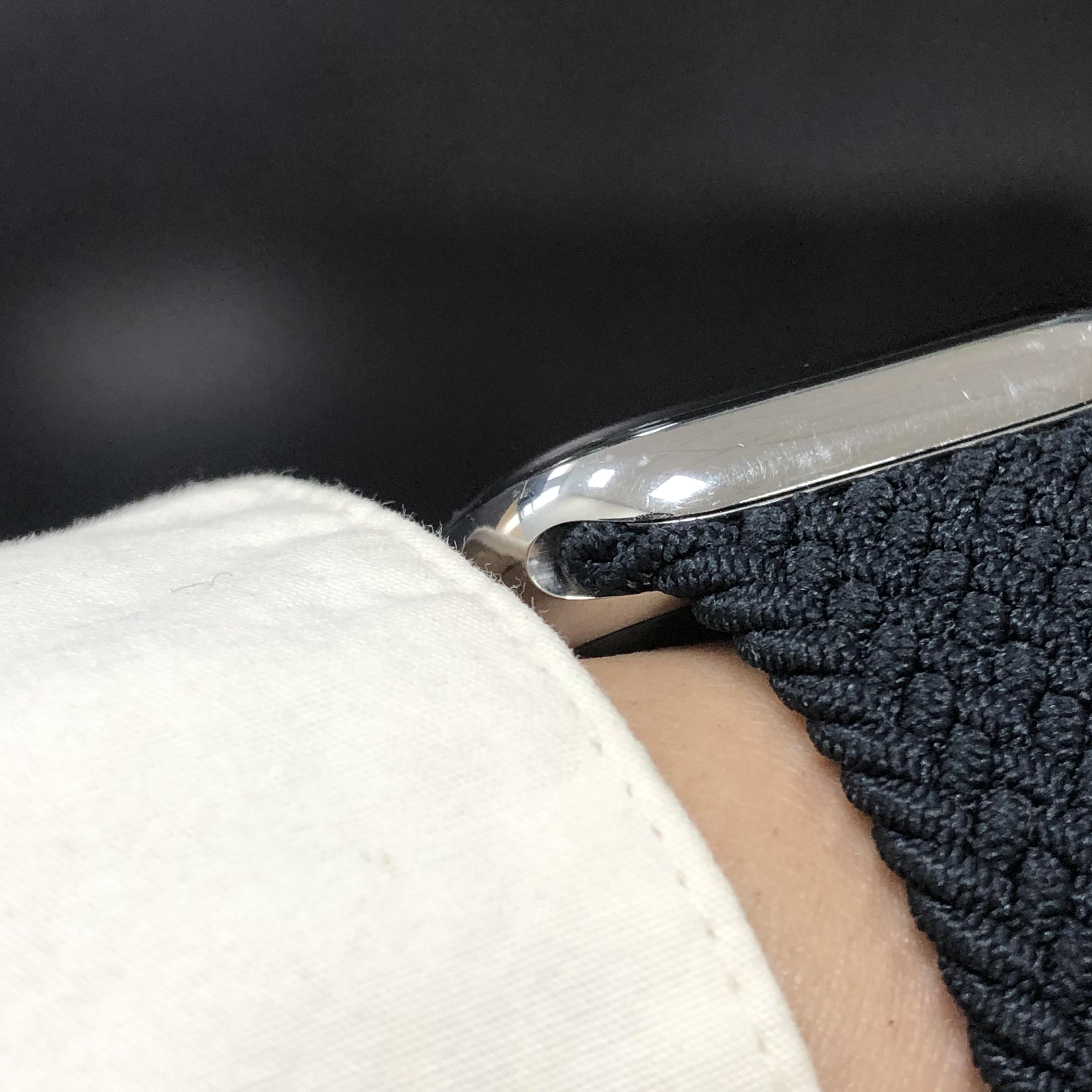 그리고 착용하다 발견한것은 밴드의 사이즈라고 해야하나 애플워치와 연결되는 부분이 약간의 공간이 남는걸 발견했습니다. 그냥 보기에는 티가 안나지만 가까이 보면 옆에 살짝 공간이 남는것을 알 수 있습니다. 사이즈는 제가 사용하는 44mm에도 불구하고 조금 차이가 나는데 이건 안정성 때문인지 제작공정상에 문제인지는 알 수 없으나 아쉽네요 (제껏만 그런건지도 궁금하네요 아시는분은 댓글 부탁드립니다.)