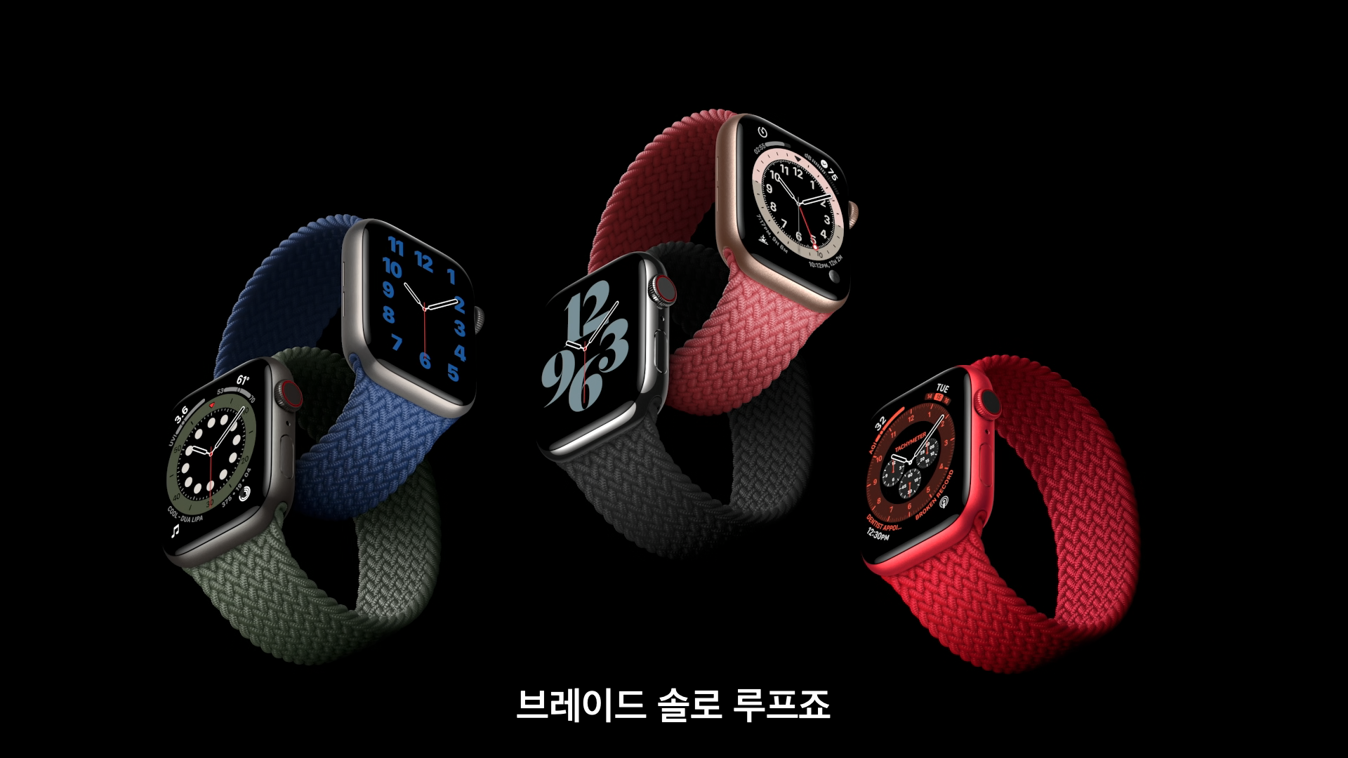 - 애플워치의 6세대 모델로 발표된 이번 모델은 메인컬러로 빨강, 파랑으로 우리에게 선보였습니다. 새로운 컬러가 추가되어 소재의 다양함은 물론 색상의 라인업이 다양해졌습니다.