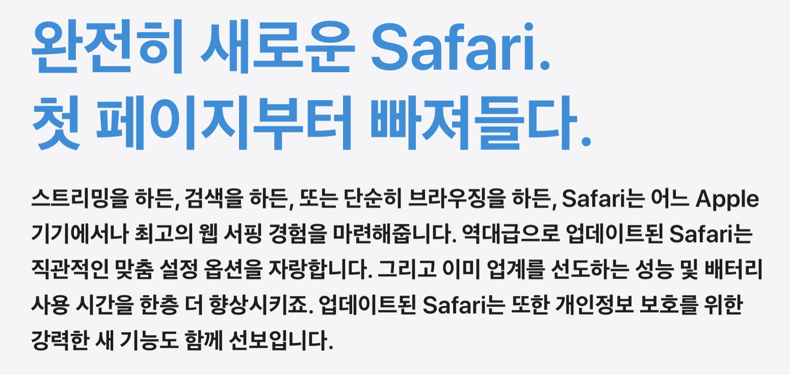 이번에도 UI/UX의 변화가 있겠지만, 이번에는 사파리의 변화를 메인으로 잡고 소개되고 있습니다. 웹서핑을 할때 좀 더 빠르고 안전하게 즐길수 있는 요소들이 직관적으로 변화되었다고 합니다. 이 외 지도와 메시지 앱도 업데이트 되었다곤 하는데, 사실 우리나라의 경우 지도와 메시지 앱을 자주 사용하지 않기에 (카카오나 네이버가 이미 우리 생활에 너무 뿌리깊에 박혀있어서...ㅎㅎ) 크게 와닿지는 않을것 같네요.