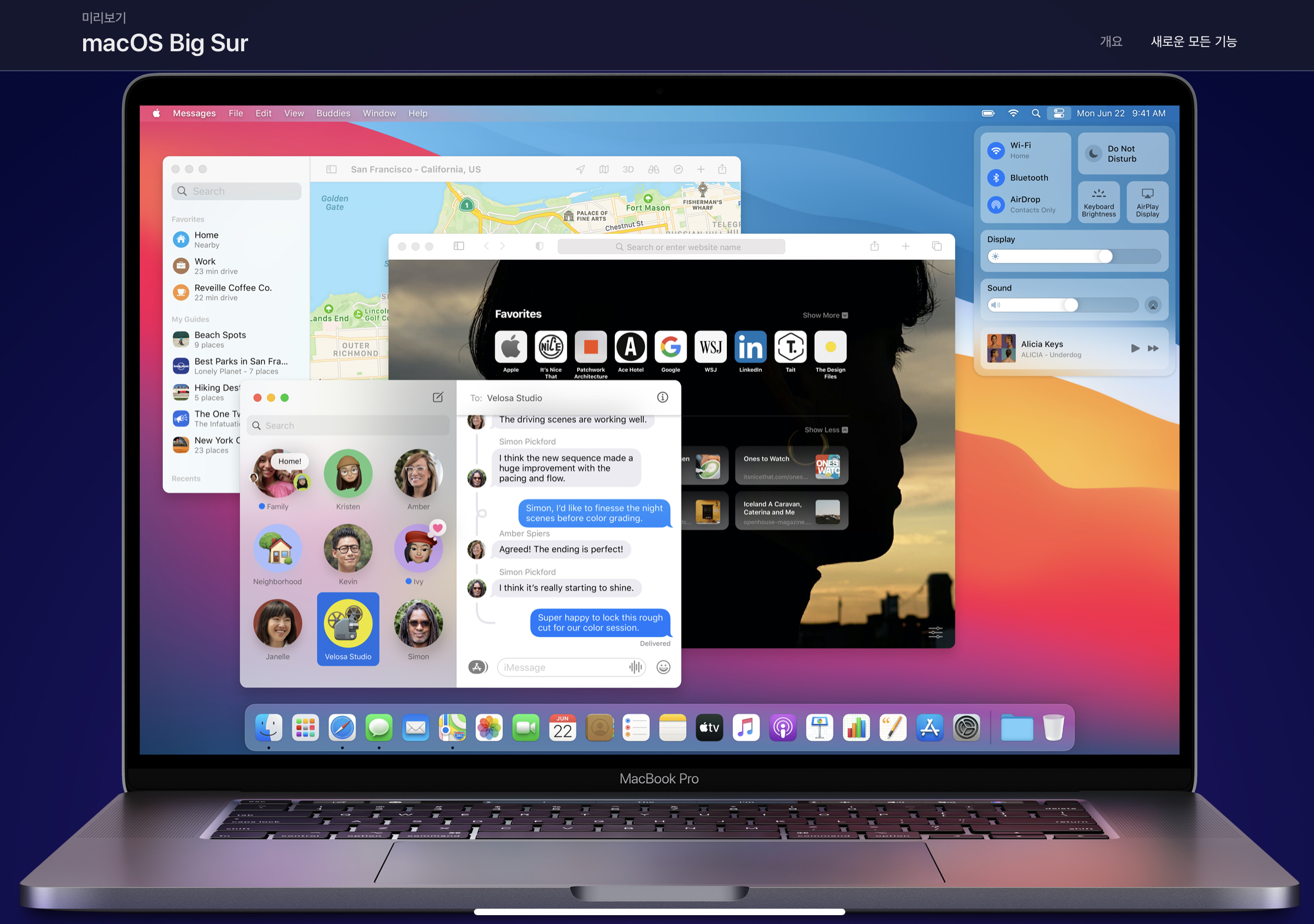 - 이미 이전 이벤트를 통해서 공개된 새로운 맥OS 빅서(Big Sur)는 기존 카탈리나OS의 후속작으로 공개되었습니다. 현재 베타버전으로 공개된 이 OS는 실리콘칩 기반 맥북에서 최적화된 성능을 보여줄것으로 기대를 모으고 있습니다. 다만, 가을 공개라고 말은 하였지만 베타버전에서도 끊임없는 버그와 안정성 때문에 곤욕을 치루고 있는터라 정확한 출시는 연말이 되지 않을까 싶습니다.