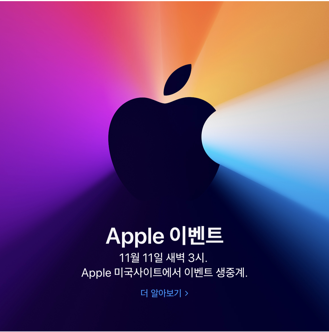 애플 신제품 발표회 "한가지 더" 안내 11/11 발표 (미국 현지시각 기준 11/10 예정)